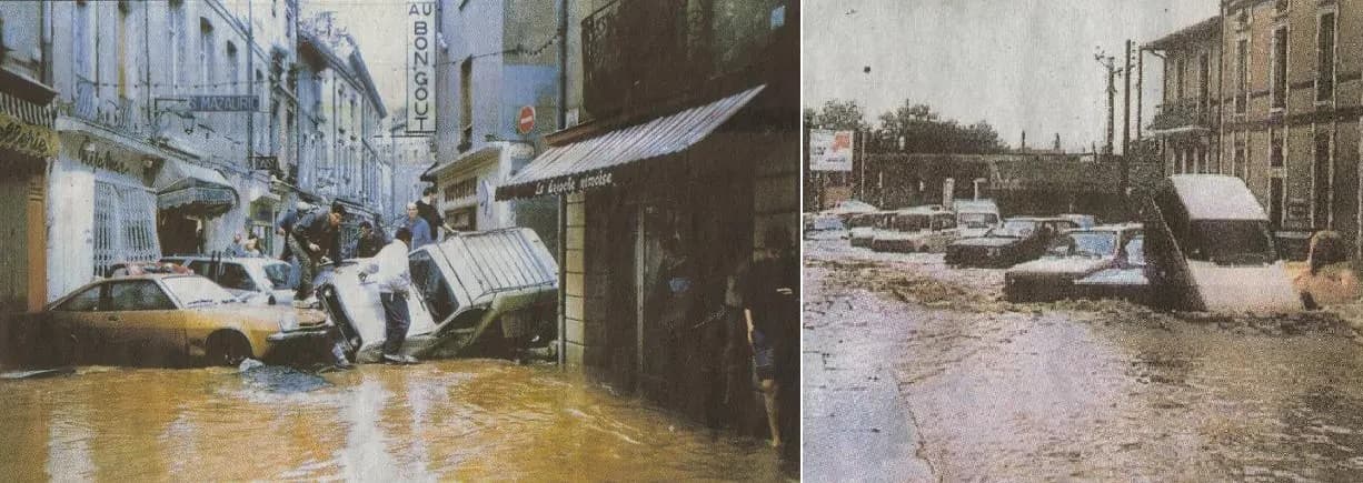 Importants dégâts suite aux inondations du 3 octobre 1988 à Nîmes - Archives Météo-Villes