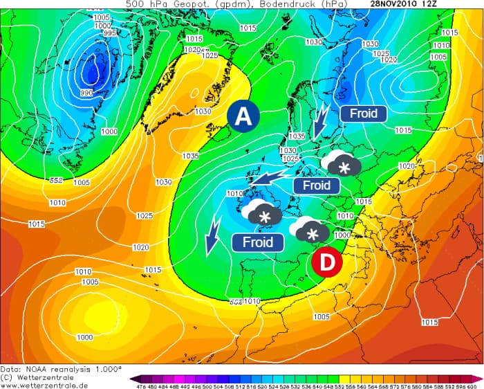 Situation observée sur le continent européen le 28 novembre 2010 - via wetterzentrale.de