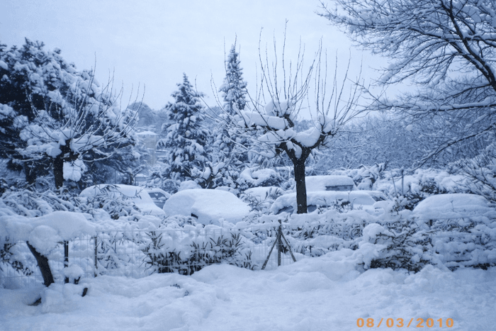25 centimètres de neige à Nîmes (30) le matin du lundi 8 mars 2010 - infoclimat.fr