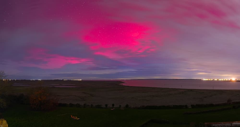 C'est dans le nord de la France que les aurores boréales ont été les plus prononcées, du fait de leur positionnement plus près du pôle magnétique. Malgré tout, la présence de nuages élevés ne permettait pas une observation parfaite. Cela n'a pas empêché les photographes et webcams d'immortaliser de jolies couleurs, comme le montre le cliché ci-dessous avec des couleurs roses dansant au dessus de la baie de Somme en seconde partie de nuit.