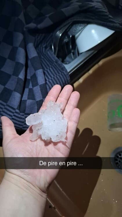 D'autres grêlons ont pu être ramassés par les habitants, d'une taille d'environ 5cm sur la commune de Doulaincourt-Saucourt (52) - Forums d'Infoclimat