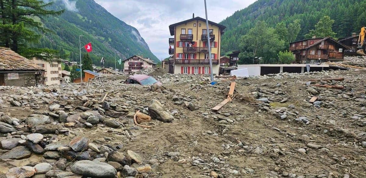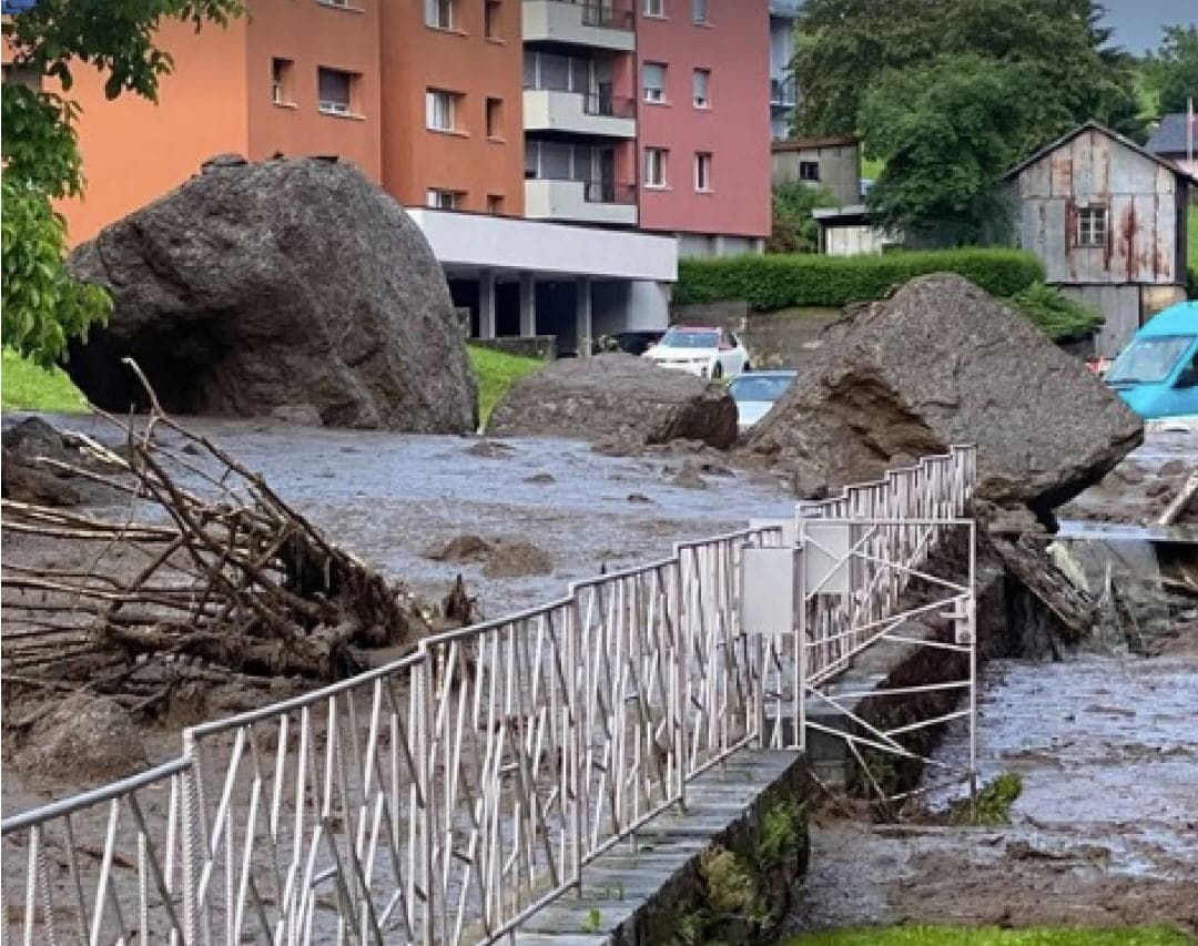 Le centre ville et la ville basse de SaasGrund dans le Canton du Valais recouvert de pierres suite aux inondations - 20min.ch