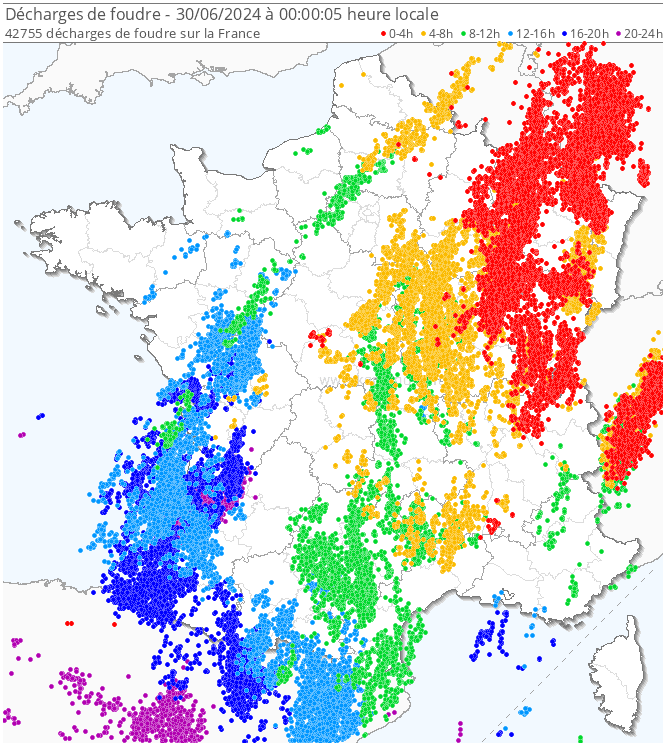 Durant les 24h de cette journée remarquable, quelques 45 755 éclairs auront été enregistrés sur le territoire national. Il s'agit de la valeur la plus élevée de l'année à cette date.