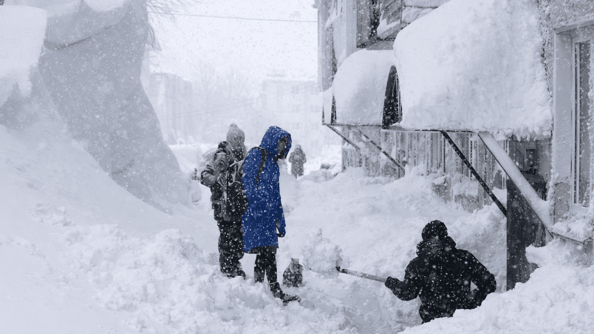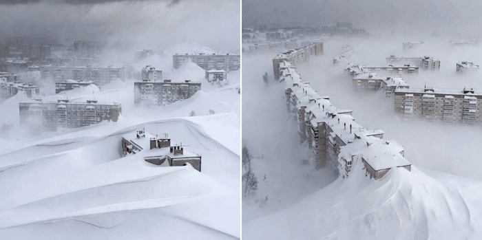 L'extrême est de la Russie fait la une depuis plusieurs jours. En cause, des chutes de neige remarquables dans le Kamtchatka avec des congères atteignant plusieurs mètres de haut et bloquant l'accès à certains bâtiments !