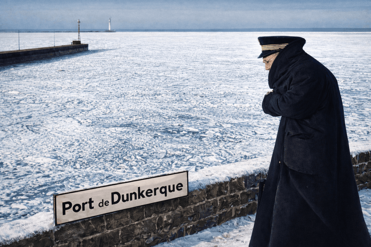 Le port de Dunkerque pris dans la banquise au début du mois de février ! Photo extraite du livre "Quel temps !" - Guillaume Séchet