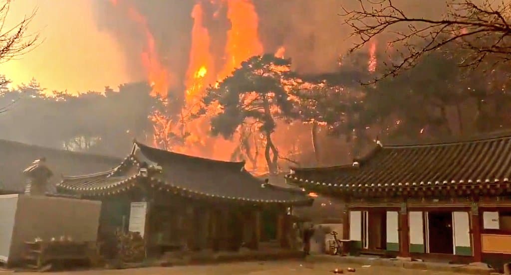 Temple menacé par les flammes près de Uiseong cette semaine – Via Twitter nanana365media