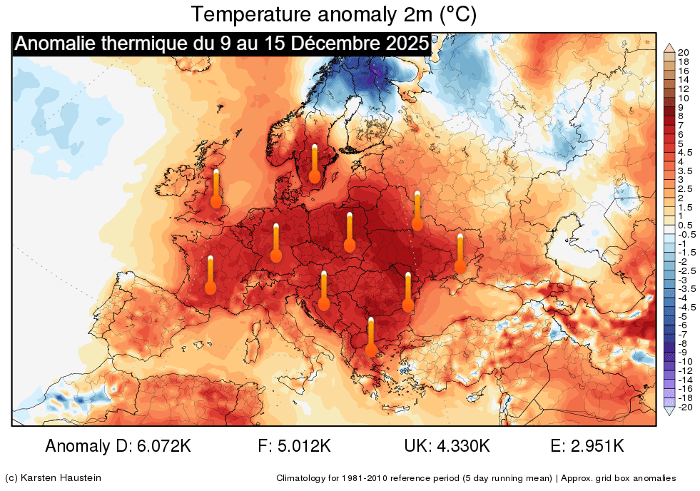 Anomalie thermique en Europe du mardi 9 au lundi 15 décembre 2025 - Karsten Haustein