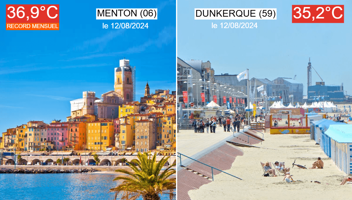 Record de chaleur à Menton et 35°C à Dunkerque le lundi 12 août 2024