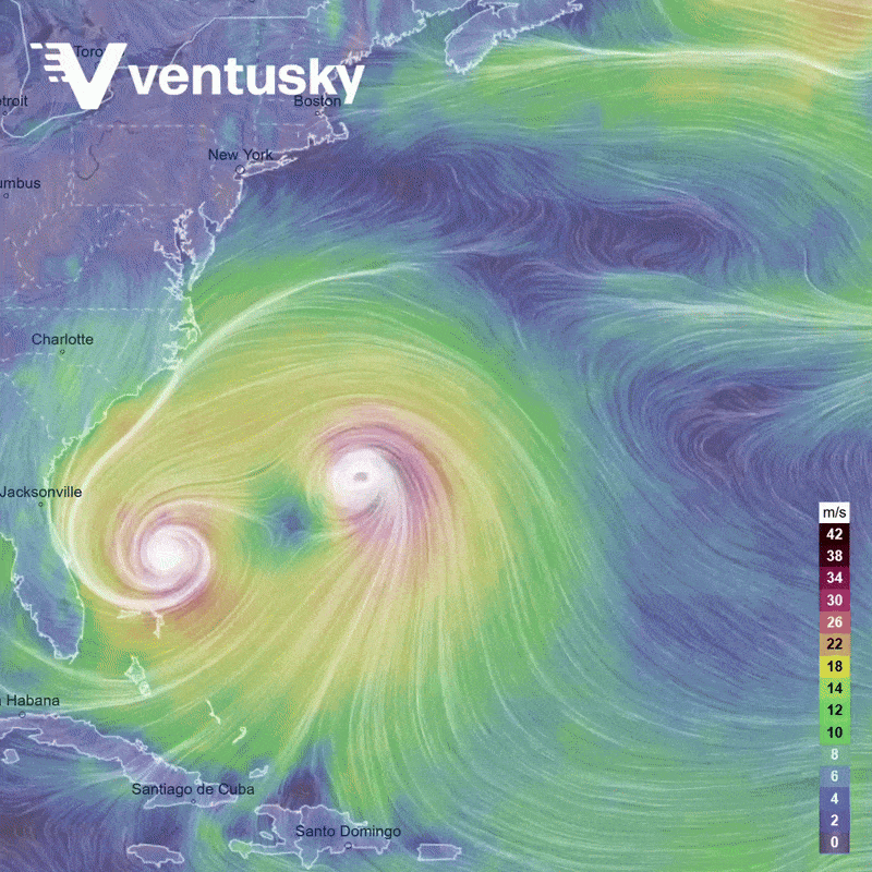 Ces prochaines heures, les ouragans Humberto et Imelda vont fusionner au dessus de l'Atlantique. Cette interaction rare entre deux phénomènes cycloniques se nomme l'effet Fujiwara. Notre article vous explique tout.