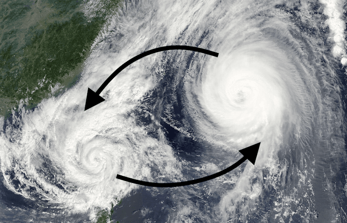 L'effet Fujiwara ou l'interaction voire la fusion de deux ouragans