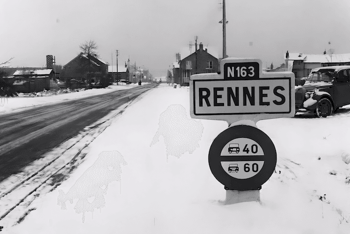 La Bretagne est loin d'échapper à cette vague de  froid monumentale... ici, à l'entrée de Rennes, à la fin du mois de février 1963- archives meteo-paris.com