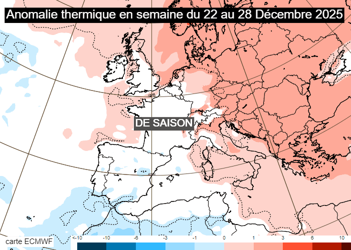 Anomalie thermique prévue en semaine du lundi 22 au dimanche 28 décembre 2025 - ECMWF