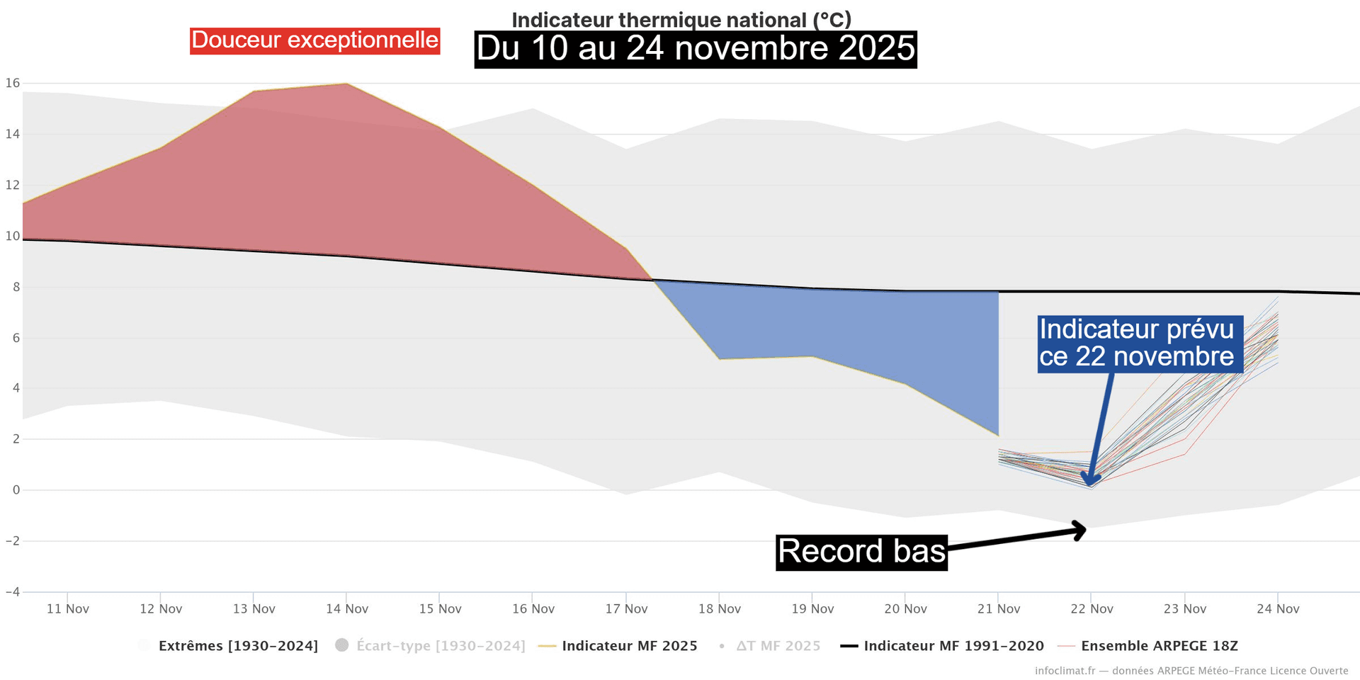 Évolution de l'indicateur thermique national du 17 au 22 novembre 2025 – Via infoclimat.fr