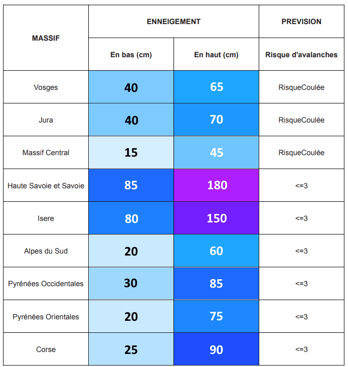 D'abondantes chutes de neige ont concerné la plupart des massifs français au cours des derniers jours. La couche de neige est souvent importante pour les fêtes de Noël.