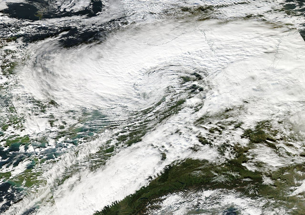 La puissante tempête Jeanett en Mer du Nord le 27 octobre 2002 - NASA