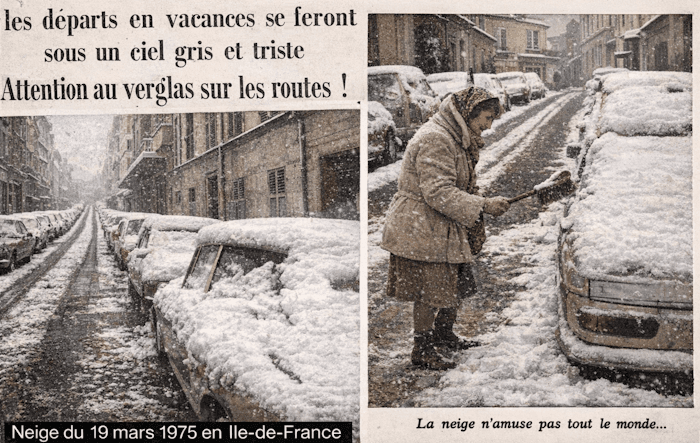 L'hiver 1974-1975 avait été particulièrement doux en France. Après trois mois d'anomalie douce, les températures s'effondrent en mars 1975 et la neige s'invite dans de nombreuses régions. Retour sur cet épisode hivernal tardif.