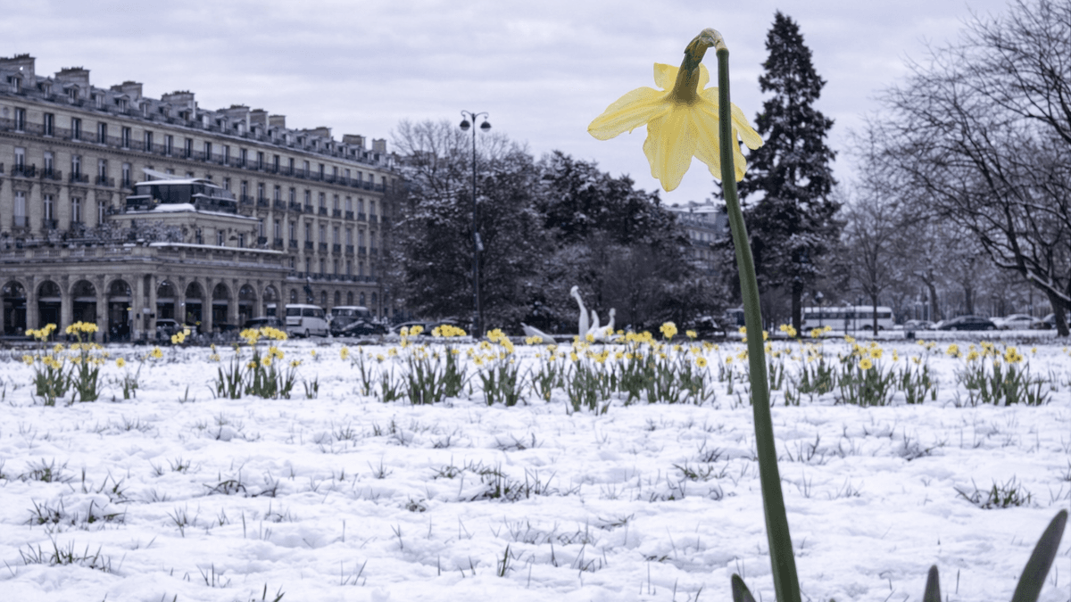 Jonquilles sous la neige à Paris le 19 mars 1975 - Chronique Météo Villes