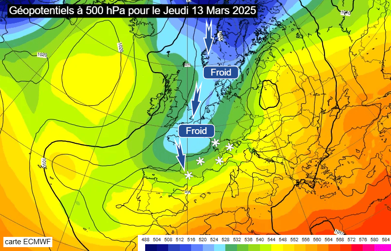 Géopotentiels à 500 hPa pour le jeudi 13 mars 2025 - ECMWF