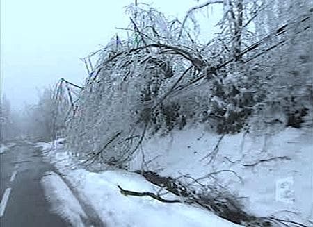 >> Les dégâts sont particulièrement nombreux en raison du poids de la glace, notamment sur la végétation et les infrastructures électriques. 500 000 foyers sont privés d’électricité au plus fort de l'épisode.