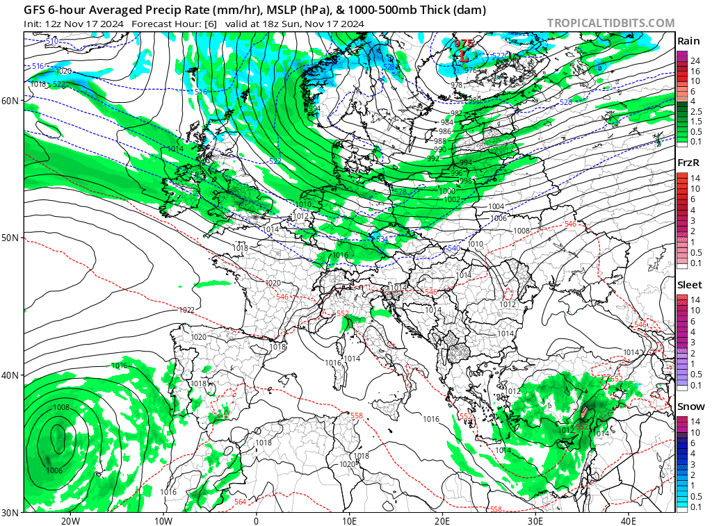 Situation météorologique du jeudi 21 novembre à 13h - GFS 6z du 17 novembre 2024 meteociel
