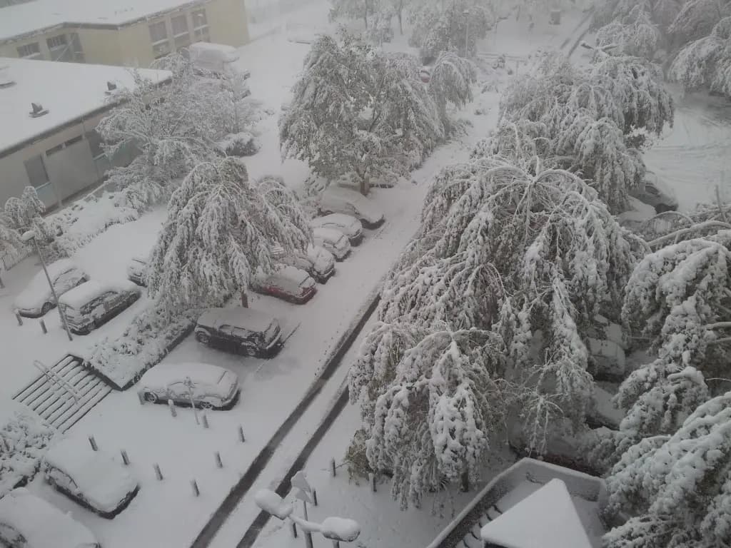 Cette neige lourde provoque d'importants dégâts sur des arbres qui n'ont pas encore perdu leurs feuilles.
