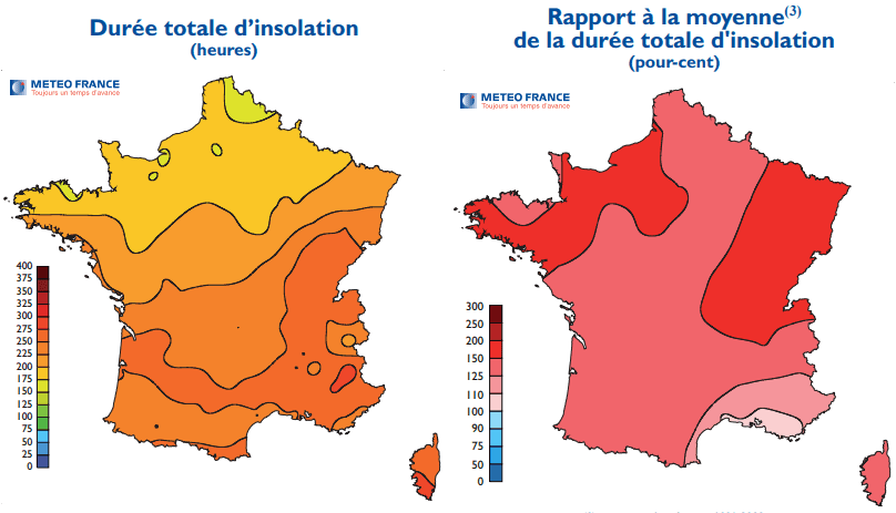 Heures d'ensoleillement et rapport à la normale au mois de mars 2012 - Météo France