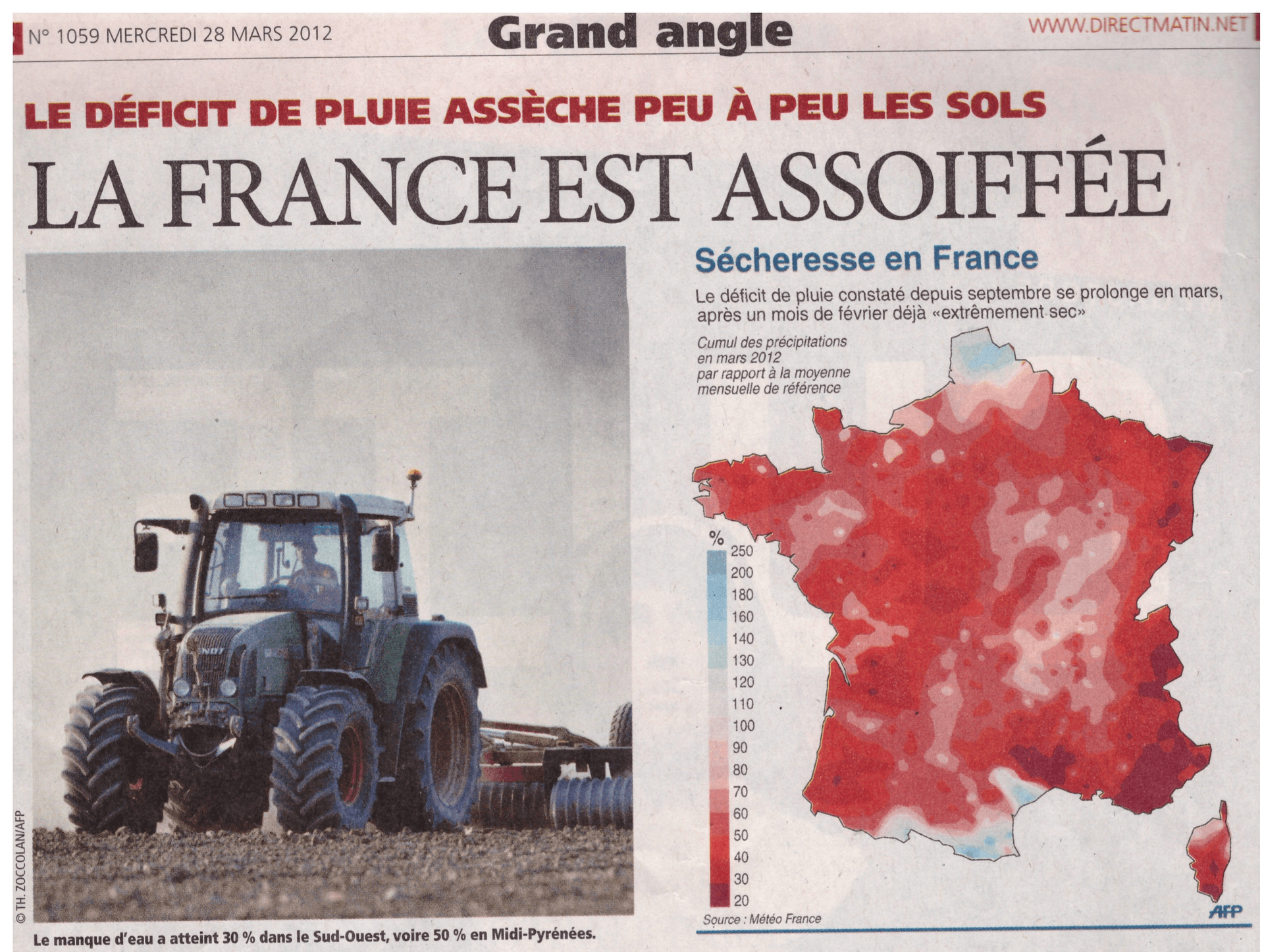 Coupure de presse évoquant la sécheresse à la fin mars 2012 - Chronique Météo Villes
