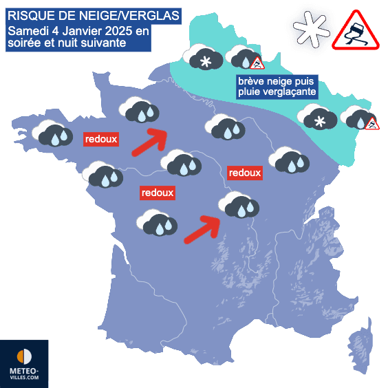 Risque de neige et de verglas le samedi 4 janvier 2025 en soirée et nuit suivante - Météo Villes