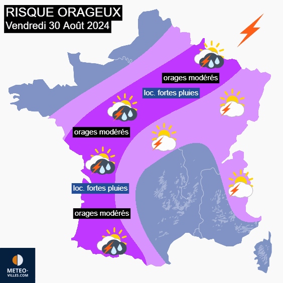 Carte du risque orageux pour le vendredi 30 août 2024 – Météo Villes