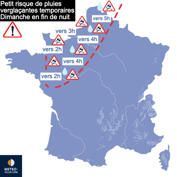 L’arrivée de cet air plus doux occasionnera éventuellement quelques petites pluies verglaçantes en fin de nuit de dimanche. Mais cet épisode sera anecdotique et n’aura rien à voir avec le précédent…