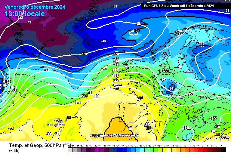 Décrochage d'air polaire en altitude, depuis le Groenland vers la France - GFS / Meteociel