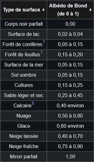 En moyenne, en hiver, l'albédo moyen du sol est de 0.15 à 0.20 contre 0.90 pour une épaisse couche de neige fraîche. La surface et l'air proche du sol perdent donc leur énergie avec une efficacité accrue de 70 à 75%... Ce qui engendre une baisse plus importante des températures.