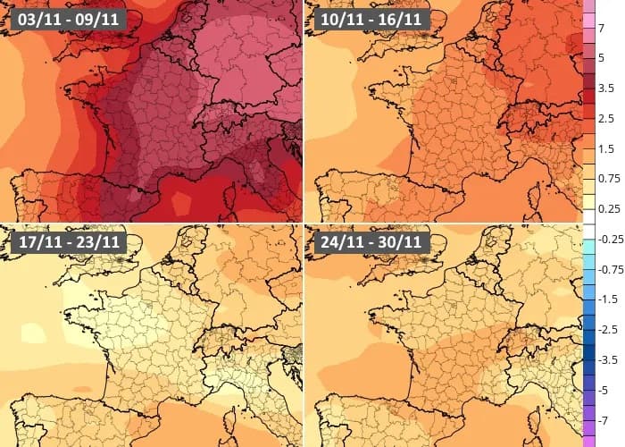 Par exemple, le mois de novembre était prévu plus doux que la normale à l'échelle de la France il y a encore trois semaines par les modèles de prévisions à long terme.