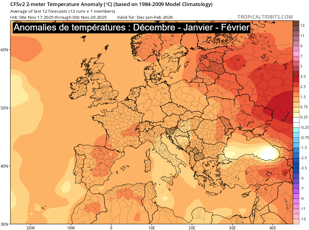 Anomalies de températures pour l'hiver 2025-2026 – ECMWF