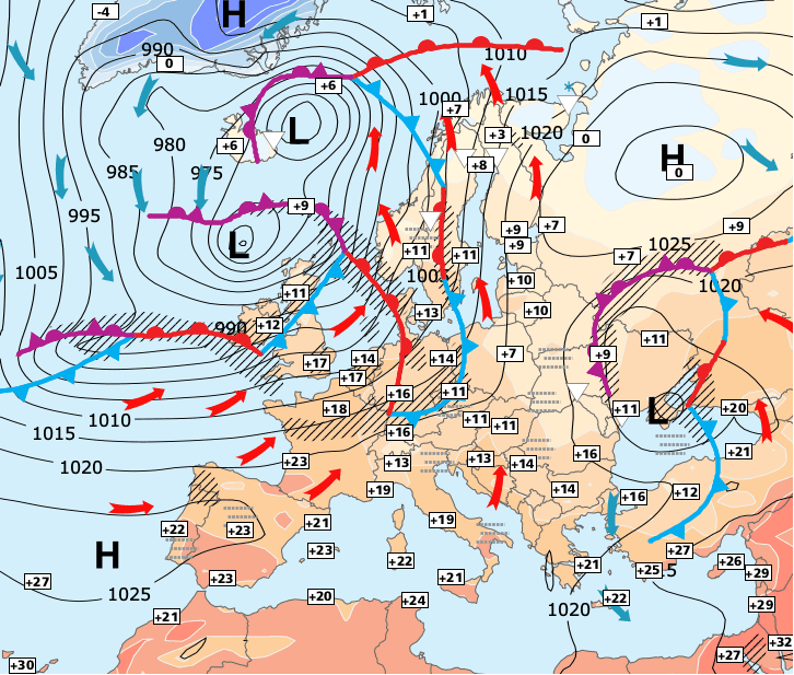 + Le courant perturbé océanique a repris le dessus sur la moitié Nord de la France mais comme le flux est orienté au sud-ouest et cet air très doux qui nous vient directement des Açores maintient les températures à des niveaux très élevés.
