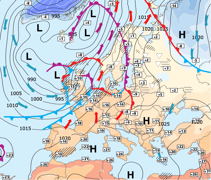 + La douceur de ce samedi est étroitement liée à la présence de la tempête tropicale Theta située dans les parages des Canaries.