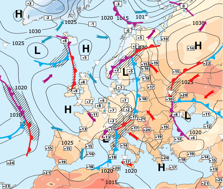 + L’anticyclone s’impose de nouveau sur l’Europe occidentale, mais l’évolution du temps des prochains jours n’est pas forcément si facile à prévoir...