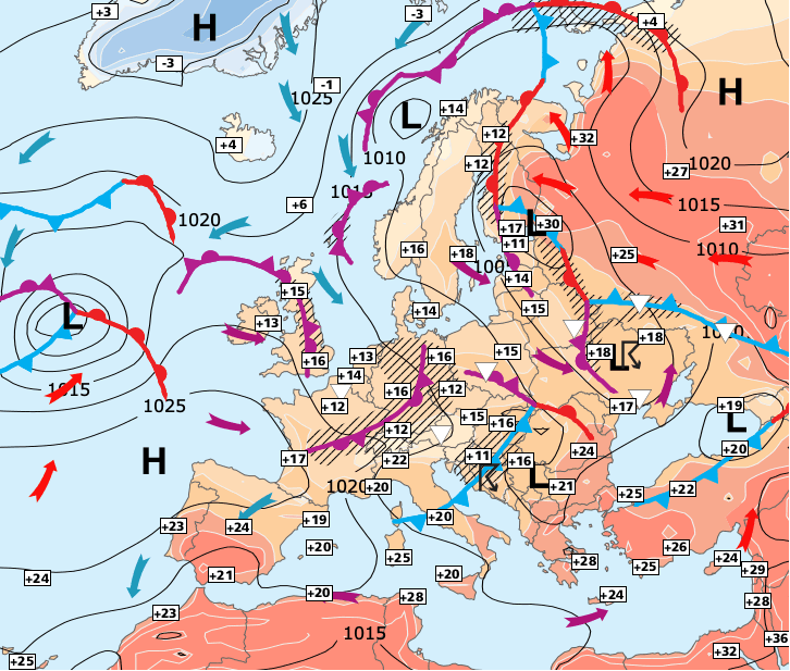 + La situation météo devrait lentement s’améliorer dans le courant de la semaine prochaine, mais cette amélioration sera plus lente sur la moitié Nord influencée par une descente fraîche en provenance de Scandinavie.