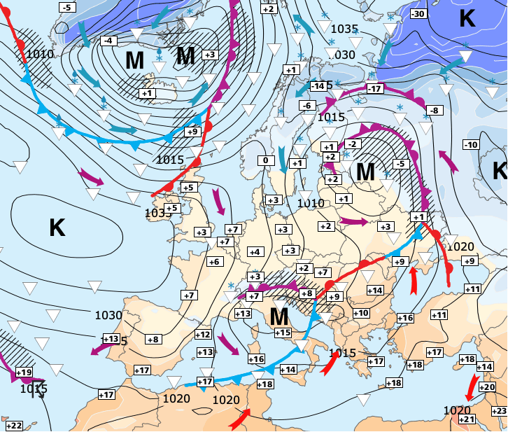 + La neige tombera parfois jusqu’en plaine (surtout sur les régions continentales) mais les températures ne seront pas assez basses pour que les flocons tiennent véritablement au sol car il n’y aura pas de gel permanent.